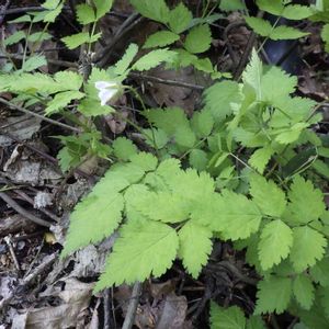 ノイチゴ?→ サナギイチゴ と教えて頂きました おはようございます😃 本日3投目は、ノイチゴ?らしい花です。ヒトリシズカやキジカクシのそばに咲いていました。何の花なのかわかりません💦