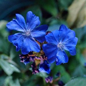 水曜日は水色🩵 一枚目はルリマツリモドキ(セラトスティグマ プルンバギノイデス)、二枚目はブータンルリマツリ(セラトスティグマ グリフィティー)です。同じセラトスティグマ(ケラトスティグマCeratostigma)属で、お花は良く似ていますが、ルリマツリモドキ(C.plumbaginoides)は宿根草で背丈低く横に広がるのに対して、ブータンルリマツリ(C.gliffthii)は低木で、落葉樹なのが異なります。 花付きはルリマツリモドキの方が良く花壇などに使いやすいので流通はこちらの方が多いそうですが名前が混同されてブータンルリマツリの名前で売られている事があり、本当のブータンルリマツリをやっと見つけて買えたのが嬉しかったです😊 野趣のある木姿が気に入りました🎶