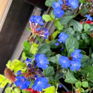 彩月(いろどりづき)の青い花2025~ルリマツリモドキ(セラトスティグマ、ケラトスティグマ)です😊 前に投稿した、ブータンルリマツリも、同じセラトスティグマ属で、園芸的に混同されていることもありますが、ブータンルリマツリは低木で、こちらのルリマツリモドキは宿根草ですので、お花はそっくりですが、形態が異なりますね。 ルリマツリモドキは背丈の低い宿根草で横に広がるので花壇の前方に植えるのがいいそうです。 今はどちらも鉢植えですが、耐寒性もあるようなので、冬が来る前に地植えにしようかなと思っています🤗 小さいですが澄んだブルーがとても美しいお花ですね💙😍💜😍