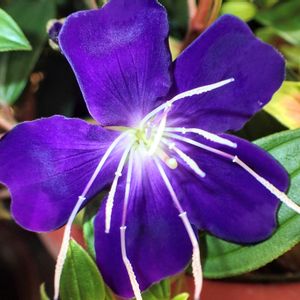 美しく青きドヨウ〜💙💜 シコンノボタンが咲きました😍 園芸的には、ノボタンと呼ばれる事が多く、どう違うのかなといつも思っていたのですが、調べて見ると、ノボタンというのは本来屋久島、奄美大島〜先島諸島に自生するノボタン科ノボタン属のMelastoma candidumのことで、ピンク〜紅紫色、稀に白色の花を咲かせる低木で、 シコンノボタンはノボタン科ティボウキナ属のTibouchina urvilleanaとその園芸品種で、中南米原産で大輪の紫色の花を付けます。 流通しているほとんどの園芸品種はシコンノボタンの改良種のようですが、単にノボタンという名で長年流通して来たのでそのままノボタンと呼ばれている場合と、正確にシコンノボタンと表示される場合があって混乱を招いてるみたいです😅💦 これは、ノボタンという名で売られていたものですが、シコンノボタンだと思います。品種も不明ですが、コートダジュールという品種に似ている気がします💙💜 以前の住まいでは戸外では冬越し出来なかったのですが、こちらでは地植えで大きく育っているのを見かけますので冬越ししてくれるんじゃないかなと期待しています🤗
