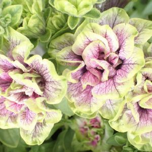 「グリーンワールド」に参加します😊これは、湘南ヴィオーレヴェルデ、八重でグリーンのペチュニア、湘南シリーズの中でも新し目の品種です。グリーンの地に、中心から紫が広がっていく感じでとても素敵です💜😍ただ、一緒に植えた、ヴェルデと。ローザヴェルデに比べると開花が遅くて、開花するまでに枝がびょーんと徒長気味になるのがちょっと残念でした😅