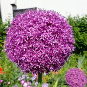 アリウム・アーリーセンセーションか、アンバサドール、どちらかわからない品種の、3度目の開花です😊 大型のアリウムを花壇に地植えして、植えっぱなしで3度の冬と2度の夏を超えたのは、わが家では初めてのことです(*^^*) ギガンティウムや、グローブマスターなど、何度か植えたことはあるのですが、どれも夏越しすることが出来ず消えてしまっていました。 2018年の秋に、アンバサドールと、アーリーセンセーションをそれぞれ3球ずつ植えたのです。もっと離して植えればよかったのに、区別がつかないとは思わず、並べて植えてしまいました。植えたのは6球なのに、花茎は7本、どれも同じ花に見えました🤣🤣おまけに強風で札は飛んでしまい、どれがどれやらわからなくなりました💦 私が密かに思っているのは、案外全部アーリーセンセーションじゃないかなーと。1球から複数本の花茎が上がることは珍しくないし、今年写真で見たアンバサドールは、あまり似ていない気がしたからです😅 はっきりさせるために、今年はまた場所を変えて植えてみようと、アンバサドールの球根を注文しています。アーリーセンセーションも入手出来たらまた植えてみようかな。。。狭い庭中アリウムだらけになったらどうするねんーヾ(≧∇≦)ノ