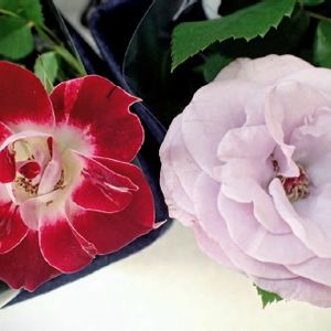 前出の、ミニバラ・ベンムーンと、ピンクのミニバラ、タマラを並べてみました。ベンムーンが青味があるのが良くわかると思います(*^^*)タマラもかすかに香りがありますが、ベンムーンが強香なので、タマラのほうは無香のように感じてしまいます😅