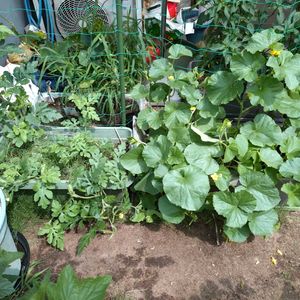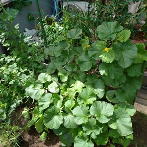 果物達の成長 1枚目は、前回載せた時より少し伸びて親蔓摘芯したらJungleみたいに育ち始めたよ!花も沢山咲いて蜜蜂達も受粉の手伝いをしてくれるので助かってるよ!メロン達は雄花、雌花が順当に出てきてるので嬉しいです😊 2枚目は、BlackBerryの花が咲いて今年は何kg取れるか楽しみだよ!!写真のは一部しか載せてないよ。Jamかソースかjuiceを作るか悩む!(^_^;)