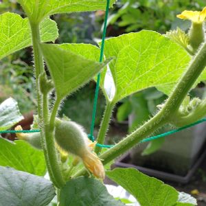 初採れキュウリ🥒2本✨ 6/29に受粉したネットメロン😊 大きくなってきたので落下防止にネットをかぶせました😆