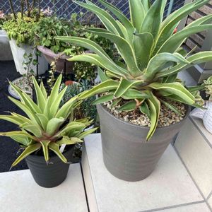 アガベ・ベネズエラ錦 確か昨年秋に5cmくらいの子株をもらって、春から急成長🌿。 他のアガベたちがゆっくりだから、こちらは見るたびに大きくなっていてビックリ😵 安定しているのか、私でもハラハラせず放ったらかしです。