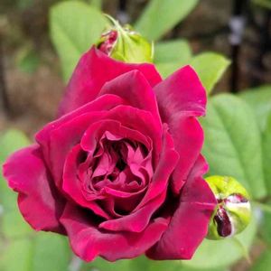 こんばんは 今日は朝からいい天気の愛知県 「突然の雨があるかも」という予報だったので、水まきをせず… 夕方雷が鳴り出したのでそろそろ降る? と空を見上げるけれど、降らない… 愛知県内でも広いんですね〰️ 旦那さんの職場の方では夕方15分位だったけれどどしゃ降りだったそうな 急なこの暑さだけれど、綺麗に咲き始めました 【アストリットグレーフィンフォンハルデンベルク】🌹 写真より赤黒い素敵なバラさんです❤️ 名前が長過ぎて、あっているのか不安になる (•﹏•ั;ก)