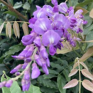 フジ💜が咲いてました~(๑ŐŐ๑) 🔍⸒⸒してみると、2度咲き。狂い咲きは良くあるそうです 以下ネットより抜粋~ 原因はいくつかあり、例えば鳥や風などによって花芽が刺激されることで開花する場合もあります。…とありました ※下の方に色の違うのは蕾でしょうか?! この時はりりーちゃんとすみれちゃんと一緒でした~😆👍️ ありがとうございました<(_ _*)> _____ |≡≡≡≡≡≡≡| | ヽエエエエエエエヽ| 彡  ̄ ̄ ̄ ̄ 彡 彡 ソヨソヨ 彡 彡涼しくゆっくり休んでくださいね~☪︎💤