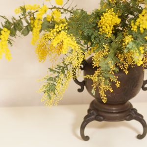 ミモザを初めて観たのは25年前、 南フランスの花市場でした。 新鮮なのに懐かしい青い香りが大好きになりました。