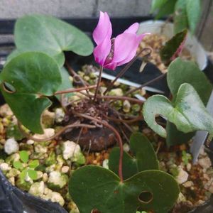 原種のシクラメン 、ロールフシアナムです💕。オシベとメシベがピョコンと飛び出ているのが独特です♫ 今年は種取りに成功して株数を増やしたいと思ってます🌱。