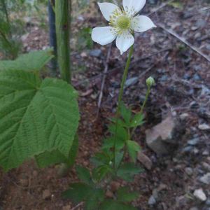 Rubus odoratus (花木苺) 昨年、娘と夜釣りに行き、その帰り道にたまたま山野草店があったので入りました。 斑入り植物とランばかりで私の欲しい物がなかったのですが、手ぶらでかえりづらいので、初めて見るこれを買って帰りました。 刺は無く、花も大きく鮮やかで、ほのかにオールドローズの香りがします。 結果、とても良い買い物になりました。