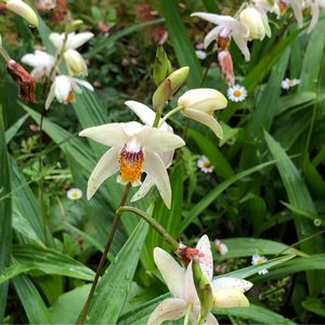 クリーム色の花を咲かせるシランの仲間、キバナコハッキュウです💛。シランより遅咲きです。