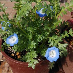 ネモフィラ 園芸仲間に山野草と熱帯植物を持っていったらお礼に頂きました。 園芸植物としてあちこちで見かけますが北アメリカ原産の野草のようです。