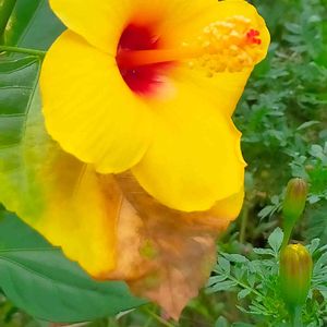 駅前花壇 黄色い花 ブッソウゲ 綺麗ですよ(◔‿◔)