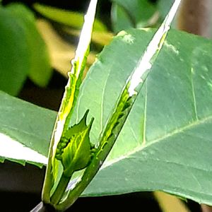 常緑性のトキワアジサイと 落葉性の西洋アジサイの 交配🍀ハサミのように 尖った葉っぱは一日で 広がり、蕾顕に。 2月には咲き出しそうです💕