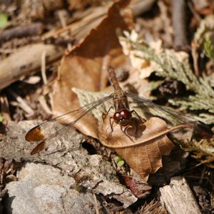 ノシメトンボ。 落ち葉に同化して動きません。 隠れているおつもりかしら? 気づかないように通り過ぎてあげましょう^^*