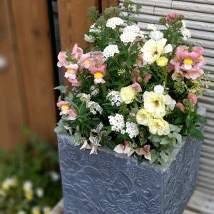 先日、久々にHCのガーデンコーナーのパトロール♪ 春だからお花いっぱい🙌 入荷日と重なったのか? どんどこ並べられていく😆 金魚草にコデマリにアキレア😍その他リーフも🌿 お家にいたラックスも入れて寄せてみました♪