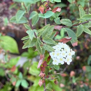 コデマリの葉、枝です 春には白いカワイイ花をたくさん咲かせてくれます 秋は放ったらかしにしてましたが、華道の上手な方に生け花の枝ものに使えばいいと教えてもらいました 紅葉🍁した枝が生け花に使えるそうです なるほどと思いました☺️ 20年以上育ててたのに、知りませんでした😊