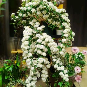 白い水曜日に参加します🏷️ 今朝に咲くお花たち オルレア 白万重 すずらん 小手毬 小手毬の盆栽