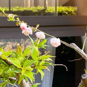 おはようございます 路面電車の道に咲いた梅? ノスタルチックでいいですね😊 梅ですよね?