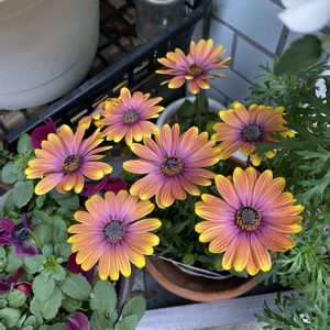 めちゃくちゃ色あざやか🌼❤️🧡💜✨ やっぱり、ビタミンカラーは元気💪がでる❣️ 一週間前に植えたオステオスペルマム😊