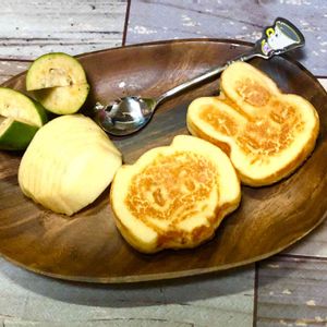 こんにちは😃 フェイジョア柔らかくなったので頂きまーす♪♪🍽 いい香り🎶 道の駅でもフェイジョア売っていてびっくりしました‼️(๑>◡<๑) パンケーキの材料はホットケーキミックスに卵と豆腐で溶いて少し水を入れて型にいれてトースターで10分 ではでは、、休日の中日💕良き日をお過ごし下さいませ♪(((o(*゚▽゚*)o))) 道の駅でも売ってました‼︎