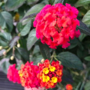 おはようございます🎵🌸😊 赤いランタナ見かけたの初めてです♪ 寒くなりました🥶 寒暖の差があると寒さこたえます💦(⌒-⌒; )