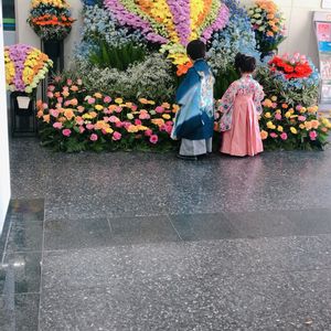 モデルは知らないお子様です。 ありがとね〜🎵🌱🌸 お花がバルーン🎈になっててテンション⤴︎ って、パチリ📱 今日は七五三か〜👘が可愛い💕