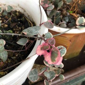 いつもこぼして植え替えしているハートカズラ💕 ひと鉢の枝を繋げたまま3鉢にしていてまたこぼして今度は2鉢繋がってます💕 4回目何とかあまり通らない隅っこに❣️