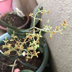 これ実になるのかな? オリーブの花をチョンチョンしたらいいよと聞いたのですが、、バンバンして木をハグさせていました😂🤣🤣 だめなものはぽろっと取れたのでこれは受精成功かな?まだ分からないですね!このままの大きさと言うこともあるので触らない所に移動しました🌱 もう一本もいくつか付いています。 (๑>◡<๑)