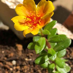 おはようございます😃 ポーチュラカがソーシャルディスタンスを取りながら咲き出しました🎵🌼 全部黄色かな〜💕 早いんですね咲き出すの! どう少し枝分かれして来ないと咲かないかと思っていました💦🌱🌼 やはり砂地より腐葉土が好きみたいです🌱🌼 植木鉢に4本は多かったかな?🤔