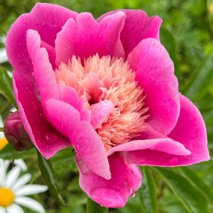 足柄ふれあい公園の花壇で,芍薬の花が咲きました🌸 散歩道の入り口で,ピンクの花びらが開ききって 真ん中の八重の花弁が、花の主役になっています‼️