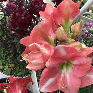 アマリリスが咲いて賑やかになりました🌸 玄関ショット! 最後はサツマイモ〜なんでって?なんでだろう🤣🤣 芽出しをしたら葉っぱの色が違う‼️ 安納芋は違うんだってすごいね〜!今月いっぱいかけて苗を作って植えていきます❗️今年は2人なので少しだけ作ろうって思ってるけどもしかしたらもうこれで足りるのかな笑笑