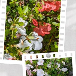 今日のお花🩷♡♥サツキ🩷♡♥ 我が家の古参。 こちらのサツキは一本の木に色々な色のお花が咲く、珍しい品種です。 盆栽を地に下ろしたのですが名前は忘れました。