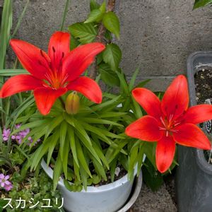 今日のお花♥ 真っ赤なスカシユリ♥ ご近所さんシリーズ♥ 元気を貰いました♥