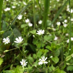 里山の森の入り口、水辺の近くにポツポツと咲いていました💕 タチイヌノフグリを真ん中に可愛らしいツボスミレ🤍💜🌿 別名 ニョイスミレ💜 小さくて可愛らしいスミレです🥰