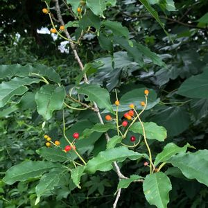 「サンキライ(山帰来)」 サンキライとサルトリイバラは一緒?別?棘がないのがサンキライとか? でも、本によって違う🤔❓ 中部地方から西の地方では、この葉っぱで柏餅を作ると言う。そういえば小さい頃に食べた柏餅の葉っぱは確かにこんな形だったように思う。