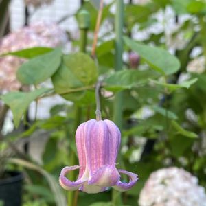 クレマチス タイニーホップ 壺クレマチスにハマって去年 苗を購入。小さかったので今年は咲かないだろうとあきらめてました。 ピンクアナベルと並んで咲いてます♪