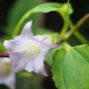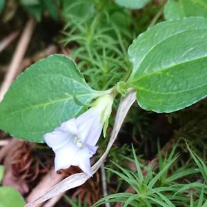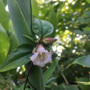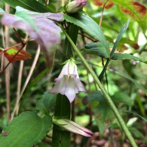 ツルリンドウ-蔓竜胆-(リンドウ科) 山地の木陰などに生え他の草木にからんで伸びます。花後、実は赤く色づきます。 藤色の様で、淡くて美しい♪