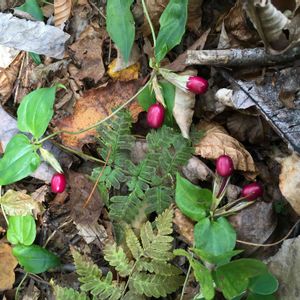 光前寺の苔の間からニョキッと 出てる赤い実 珍しくてパチリ🤳 なんだろう👀 れいさんに教えてもらいました。 ツルリンドウです。