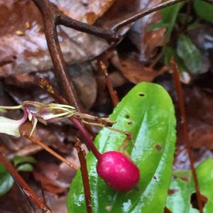 ツルリンドウ(蔓竜胆)の赤い実 リンドウ科ツルリンドウ属の多年生つる植物。 他のリンドウの仲間は、乾いた殻の中に小さな種を付けるが、このツルリンドウだけは、赤い実を付ける。 花期8月~10月 先週の山歩きで見つけました♪ 初めて本物を見ました♪花も見てみたい!