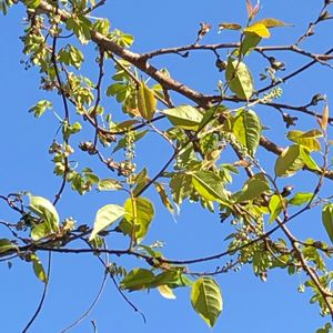 この木は何の木ですか? 左上にはアケビの実が絡まっています。 ウワミズザクラの木でした🎵