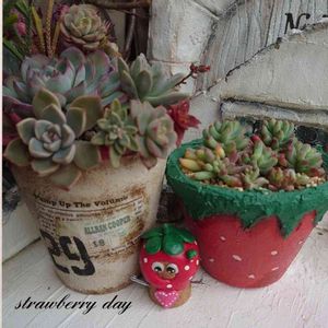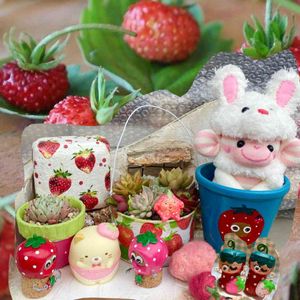 🍓🍓いちごの日🍓🍓 さくら餅子さんの、🍓ペコちゃんのリメ缶 yubaraさんの🍓スイーツ鉢 まかろんちゃんの🍓リメ缶 そして、いちごさんのコルクベリーちゃん ❔❔❔ 最前列に居るのは‼️ 右の🕶️サングラスベリーちゃんは、新作。 左のは「キモカワベリーちゃん」なのですよ~🤣 キモくは無いけどね😜 キモカワ専門店の会員さんの皆さんの分を作ってくれましたぁ⤴️⤴️⤴️ 会員限定なんだってぇ。 いちごさん、有り難う🙇🙇🙇 多肉は「タスマニア」