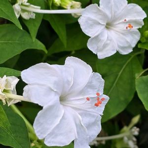 こんばんは✩.*˚ʚ(。• •。)ɞ 🌸 微笑みがえし 🌸 2段咲きの 面白い白粉花 🤍🤍 今年も 定位置で 咲いてくれています 𑁍ࠬܓ 今日も一日 お疲れさまでした(⁎ᴗ͈ˬᴗ͈⁎)⋆*☆⡱*