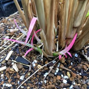 同じ耐寒性(5℃)パープルファウンテングラスが越冬できなかったんで、無理だろうな〜と思って整理しようとしたらピンクの新葉が😍 嬉しいです ギリギリで越冬できたんですね(うちの冬の最低気温マイナス5℃前後)
