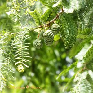 「メタセコイヤの実🌿」 昨日撮影。 大木を見上げると、実がたくさんぶる下がっています。 秋が深まって来ると、実の色が茶色く変化します。🌲