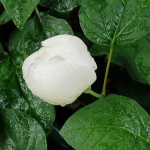 ヤマシャクヤク(山芍薬) 今年最後のお花 雨にうたれながらも 蕾を閉じて健気に頑張っている姿が愛おしくて写真を撮りました 今年の開花は6輪🤍🤍🤍🤍🤍🤍 咲く時期が少しずつ ずれていたので一週間楽しませてもらいました このお花も今日で3日目 明日には散ってしまうのでしょうネ(T_T)