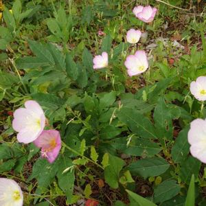 昼間から咲いている月見草 宵待草などの夜に咲く月見草とは、違い 庭の隅の方で、昼でも咲いているので、 昼咲き月見草の、名前がつきました 可愛いピンクの優しい花 花言葉は 清純、奥深い愛、無言の愛情 固く結ばれた愛、新しい恋人、自由な心 こぼれ種で、必ず翌年花が咲き か弱い様ですが、生命力強いんです❣️❤️