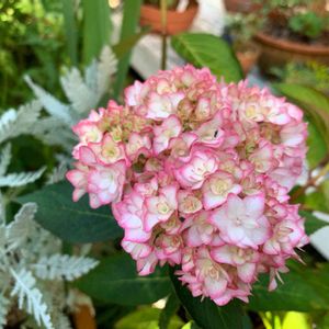 店頭に並ぶ紫陽花シリーズ 【紫陽花 恋物語】 そろそろ、4月も後半になって来るので 紫陽花の陳列も激化するかと思いきや まだ、例年に比べ全然でした💦 他の地域のフォロワーさん達は もはや 紫陽花パーティー🎉でも、 始まったかのように✨ 🪴毎日 嬉しい報告ばかりを目にしてたので、こちらもと思っていただけに 残念💦 ちなみに、こちらは 静岡県 加茂花菖蒲園 作出 加茂セレクションの品種です。 去年辺りから メキメキと頭角を表し出した 人気商品💕 サイズ的には【てまりてまり】と同じような感じですが、赤の糸覆輪のある花弁が 星形の八重でテマリ咲きとなってます。 土のphに影響されるので、色味に関しては 環境次第で色々変わるかも知れませんね。