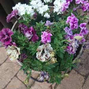 ペチュニアとバーベナの寄せ植え シックな色合いが好き